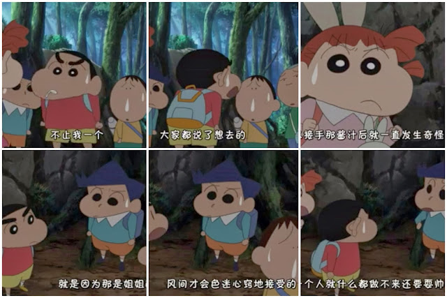 小新用蛋黃醬把這個要來搶醬汁的「魚子醬」打退。簡單來說就是車子因為駕駛員看不見前方,車子失控墜河,門打開了,五人跑入森林里展開邁向春日部B級美食嘉年華的逃亡旅程(?)。