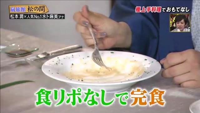 水卜說她平時都是等拍完後才快點把食物拿來吃(都無法好好享用)。謝謝松本在她在鏡頭前吃完前一直站著等候。